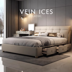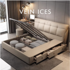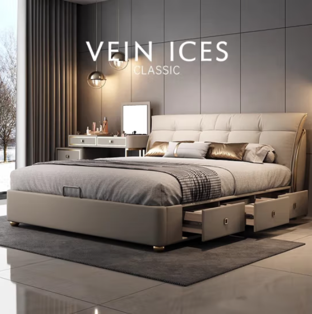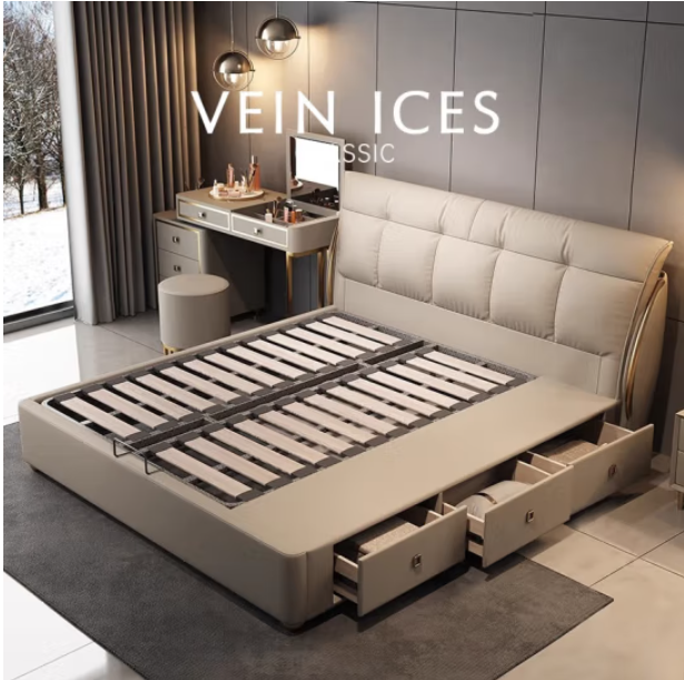 商品名称:奶油风真皮床现代简约1.8米2米主卧双人大床齐边2.2米储物新婚床