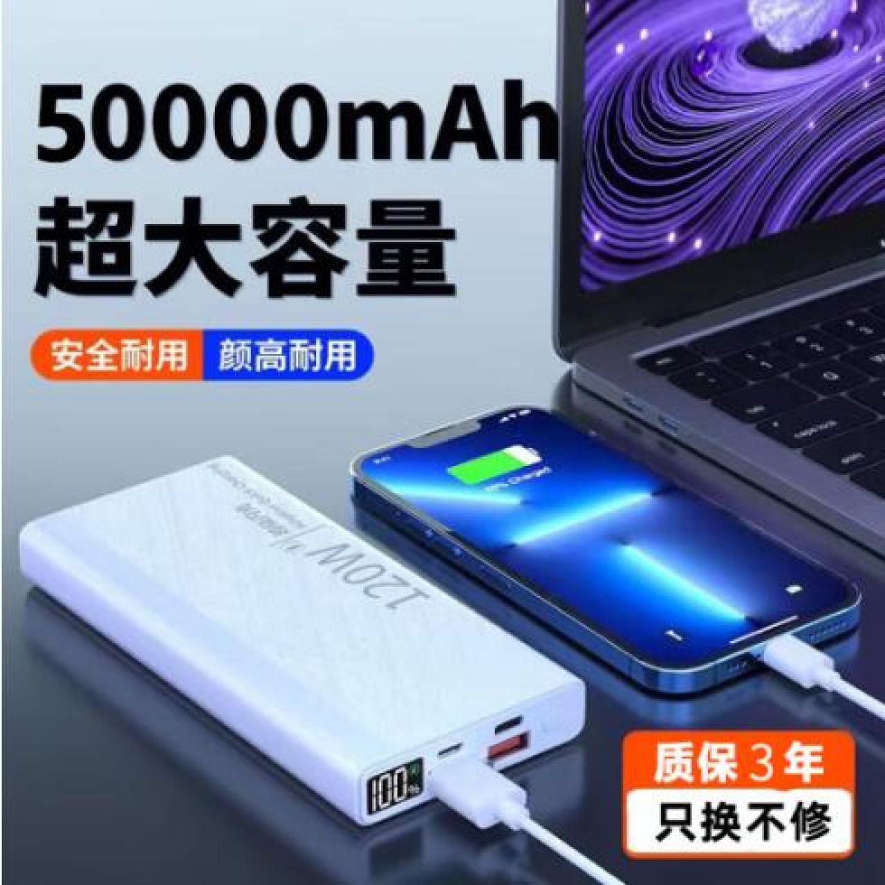 善顿超级快充120W充电宝20000毫安轻薄便携大容量多口输出外卖通用苹果华为安卓户外移动电源