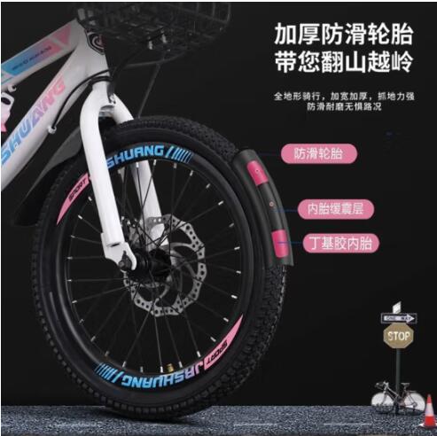 学生自行车儿童山地车6-7-8-10-12-15岁男女孩单车轻便18寸20寸22 标配单速白粉色