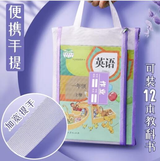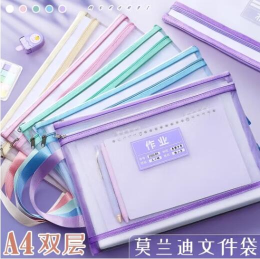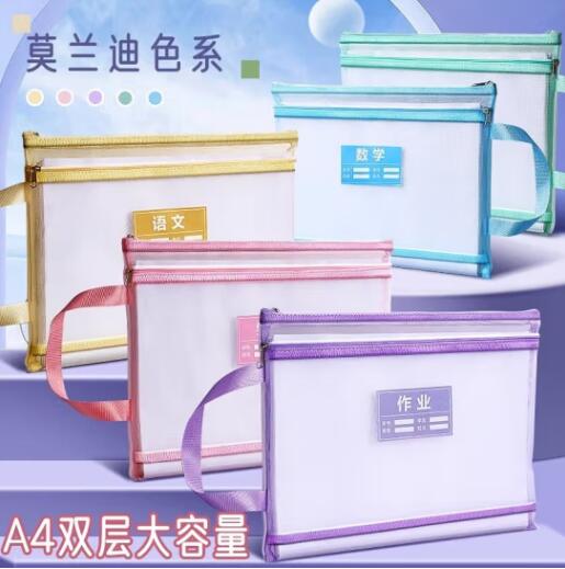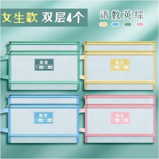 透明网格学科科目分类袋双层A4文件袋小学生试卷收纳袋拉链袋透明书袋课本分科学习资料手提袋 【双层女生款4个】